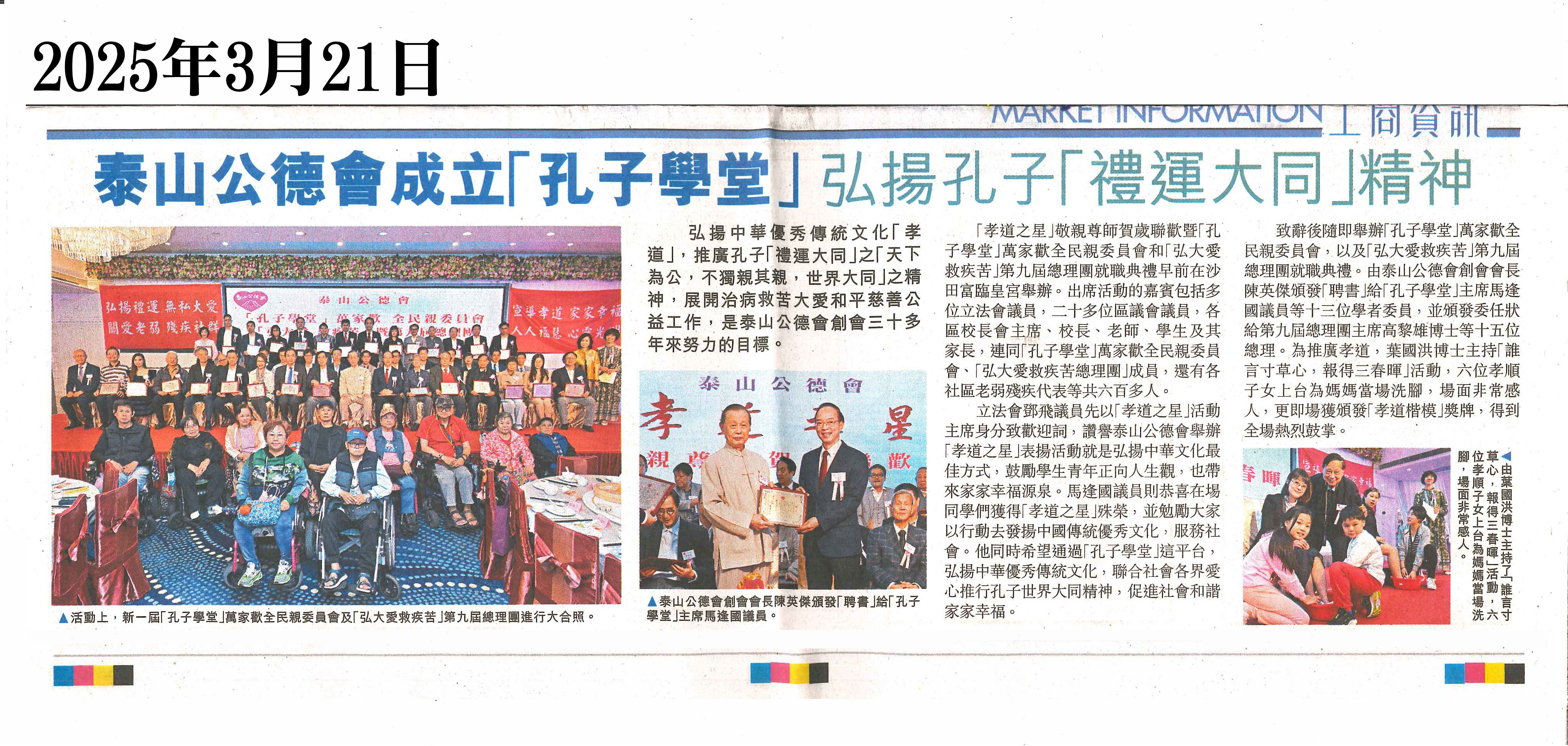2025年3月21日 「孔子學堂」萬家歡 全民親委員會「弘大愛 救疾苦」暨第九屆總理團就職典禮 「孝道之星」敬親尊師賀歲聯歡會